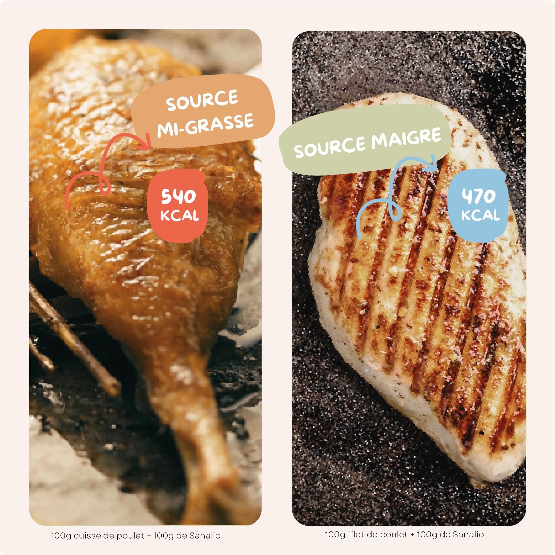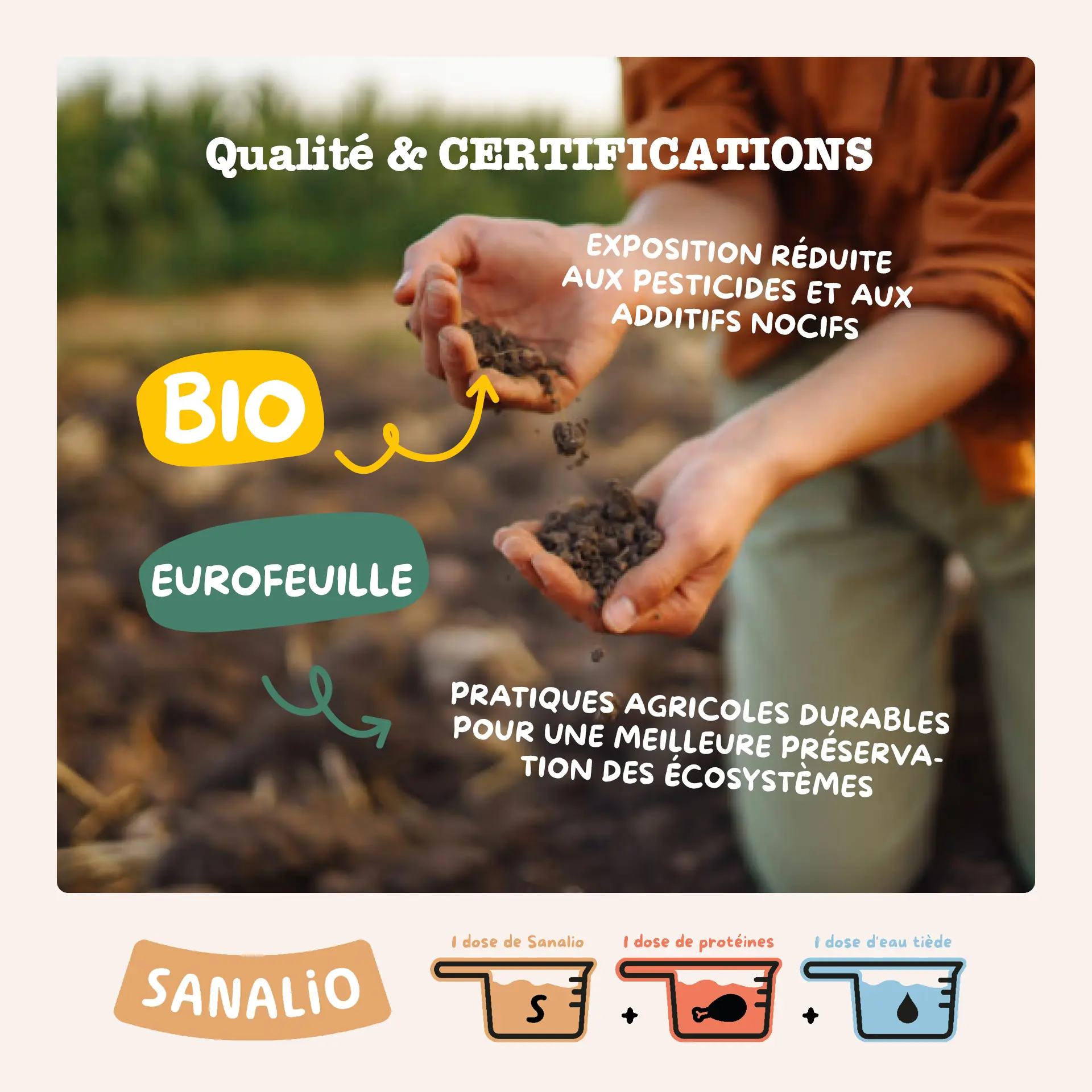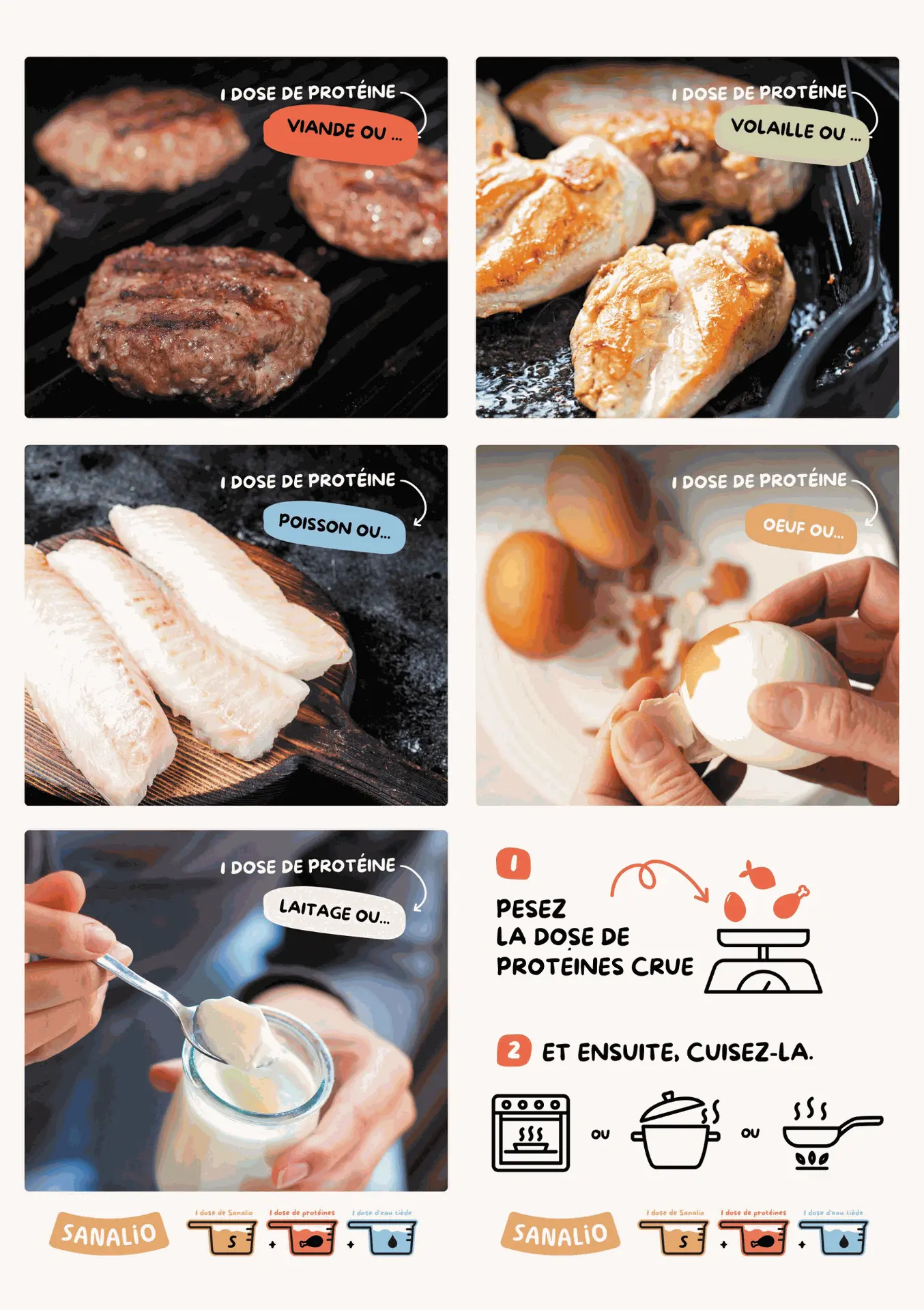C’est pourquoi Sanalio vous laisse la liberté d’ajouter la source de protéine animale qui convient le mieux à votre compagnon, sans devoir toucher au dosage recommandé.